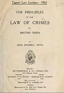 Authority selected Huda as a fellow of Calcutta University in 1902. He delivered the historical Tagore Law Lecture published in a book named The Principles of the Law of Crimes in British India by Butterworth & Co,(India) Ltd.[6] Jeremy Bentham, William Austin, and William Blackstone influenced him. He presided Muhammadan Educational Conference at Rajshahi in 1904, the East Bengal and Assam Legislative Assembly member in 1908, the All India Muslim League President in 1910, and Imperial Legislative Council between 1911 and 1915.
