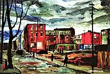 After a brief return to Montreal, Lefkovitz decided to continue her studies at the Louvre and Académie Julian in Paris.[14] A year later, she moved on to Spain and Italy for a time before returning to Montreal, where she took a bookkeeping day job, taught art in the evenings, and "painted like mad."[15] She began experimenting in the ancient art form of encaustic painting, and in 1953, several of these works were exhibited in Montreal.[11][16]