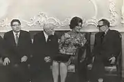 ![]() Dmitri Shostakovich (far right) in 1974 (photograph by Yuri Shcherbinin) | |