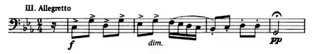 The title The Bells of Zlonice does not appear in the score, although Dvořák is reputed to have referred to it this way in later years. While some argue that there is no programmatic content, it has been noted that several passages sound much like bells.[4] It was originally conceived as a three-movement work, and the Allegretto was added later. The 658-measure first movement, marked Maestoso — Allegro, is, in the original version, the longest movement of all his symphonic works,[5] owing to a 278-measure repeated exposition section comprising 44 score pages, thereby requiring just under 19 minutes to perform uncut.