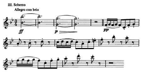 - Scherzo: Allegro con brio in B-flat major, with trio in A major