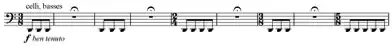 The bass ostinato again asserts itself early on, firmly linking the finale with the previous movements. The timpani carry the melody with celli and double basses in accompaniment.