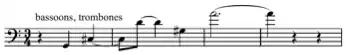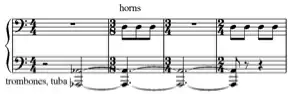 Brass: 5 horns in F, 3 trumpets in C, 1 bass trumpet in C, 4 trombones, tuba