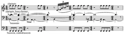 Winds: 1 piccolo, 2 flutes, 2 oboes, 1 English horn, 3 clarinets in Bb (1st doubling clarinet in A, 2nd doubling clarinet in Eb), 1 bass clarinet in B, 3 bassoons, 1 contrabassoon