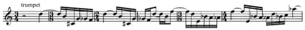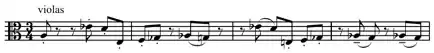 Additionally, Penderecki also puts added emphasis on the interval of the half step, the smallest unit of the chromatic scale, seen most prominently in the viola solo section. This half step, followed by a short rising chromatic figure, is described by Cindy Bylander as Penderecki's "sighing motive."[22]