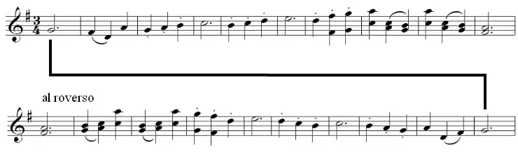 The "Minuetto al Roverso" is the reason this symphony is sometimes called "The Palindrome": the second part of the Minuet is the same as the first but backwards, and the Trio is also written in this way.[3][4]