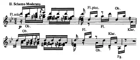 The symphony calls for a romantic orchestra of the following instruments: