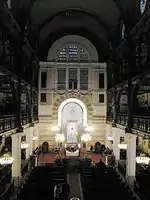 The synagogue is built in Roman-Byzantine style,[1] and has been described as an architectural gem.[2] The internal metallic framework is visible and was created by architect Gustave Eiffel.[3]