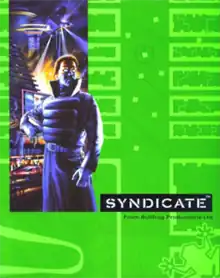 Syndicate is an isometric real-time tactical and strategic game from Bullfrog Productions created in 1993, and released for a variety of platforms beginning with the PC and Commodore Amiga. It is the first title in the Syndicate series. Set in a dystopian future in which corporations have replaced governments, Syndicate puts the player in control of a corporation vying for global dominance.