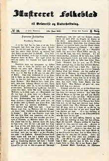 Synnøve Solbakken is a Norwegian peasant novel by Bjørnstjerne Bjørnson published in 1857.[1][2] The story was first published in the newspaper Illustreret Folkeblad in 1857, and it was then issued in book form by Johan Fjeldsted Dahl that same year.[1][3]