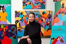 Synthia Saint James (born February 11, 1949) is an American visual artist, author, keynote speaker, educator and actor in the 70s. She is best known for designing the original cover art of the hardcover edition of Terry McMillan's book Waiting to Exhale.[1] Additionally, Saint James designed the first Kwanzaa stamp for the United States Postal Service, first issued in 1997 and the Kwanzaa Forever Stamp, issued in 2016.[2][3]