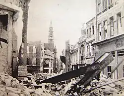 Allied air raids in 1944 and heavy fighting between the German and Soviet armies destroyed 65% of Stettin's buildings and almost all of the city centre, the seaport, and local industries. Polish Home Army intelligence assisted in pinpointing targets for Allied bombing in the area of Stettin.[92] The city itself was covered by the Home Army's "Bałtyk" structure, and Polish resistance infiltrated Stettin's naval yards.[93][94] Other activities of the resistance consisted of smuggling people to Sweden.[95]