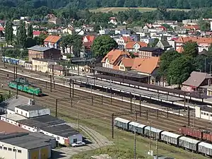Szczecinek railway station is a railway station serving the town of Szczecinek, in the West Pomeranian Voivodeship, Poland. The station is located on the Piła–Ustka railway, Szczecinek–Kołobrzeg railway and Chojnice–Runowo Pomorskie railway. The train services are operated by PKP and Przewozy Regionalne.