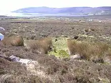 A few days later, Fergus said he was leaving the Dún at Glencastle and himself and Domhnall drank a lot of liquor. Domhnall fell asleep he drank so much. Munhin cut his sword off using the secret magic from the enchantress. Fergus took the sword and with one fell swoop he cut off Domhnall's head. The next morning, Fergus's flag flew over Dún Domhnall's fort. Fergus and Munhin then lived together as man and wife. One day Fergus received a call to return to the fort at Cruachan in the middle of Ireland. Munhin insisted on going on the trip with him. They set off on a black steed in torrential rain. They reached the small river which joins the Owenmore River leading from Carrowmore Lake which was in flood and they had to ford the river across one small stick. As they crossed the river, Fergus, fearing that Munhin would be as faithless to him as she had been to her former husband, gave her a push and she fell into the flooded waters. She flailed wildly but failed to be able to save herself and she was drowned. The river has ever since been known as the Munhin River.[7] Following the murderous attack, Fergus continued on his way but at Barrooskey (a remote townland near Glenamoy in the east of Kilcommon parish in the Barony of Erris).