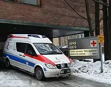 The Töölö Hospital is a hospital in Taka-Töölö, Helsinki, Finland, belonging to the Helsinki University Central Hospital. It has special departments for plastic surgery, orthopedic surgery and traumatology, hand surgery and neurosurgery.[1] The hospital has a 24-hour policlinic receiving trauma patients from the Helsinki capital area and occasionally from the entire region of Southern Finland. Patients usually arrive at the policlinic on a medical note. The policlinic treats about 18 thousand patients per year.[2] The hospital also hosts the cleft lip and cleft palate centre HUSUKE, containing research and care for cleft lips and cleft palates as well as the department for care of mouth and jaw diseases. The Töölö Hospital also has its own X-ray facility and laboratory.