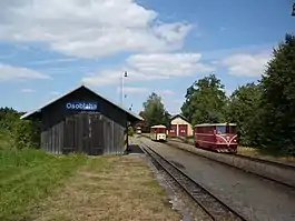 The Třemešná ve Slezsku – Osoblaha Railway is a narrow-gauge railway connecting Třemešná on the Krnov–Głuchołazy line with Osoblaha on the Czech-Polish border. It is one of the three remaining narrow gauge railway lines with regular passenger traffic in the Czech Republic and the last one operated by the state-owned railway company České dráhy.