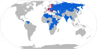The T-72 is a family of Soviet main battle tanks that entered production in 1969.[9] The T-72 was a development of the T-64, which was troubled by high costs and its reliance on immature developmental technology. About 25,000 T-72 tanks have been built, and refurbishment has enabled many to remain in service for decades.[10][11] It has been widely exported and has seen service in 40 countries and in numerous conflicts. The Russian T-90 introduced in 1992 and the Chinese Type 99 are further developments of the T-72.[12][13] Production and development of various modernized T-72 models continues today.