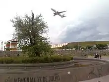On July 17, 2012, the fifth anniversary of the accident, a plaza named Memorial Square was opened. Memorial Square was built on the site of the TAM express warehouse (demolished on August 5, 2007), which is 8,318 square metres (89,530 sq ft) in area.[58] There is a memorial with the names of the victims engraved as well as a mulberry tree that survived the crash.[59] There is another memorial in Porto Alegre called "Largo da Vida," where 199 trees have been planted. The memorial is located near Salgado Filho International Airport (the airport from which Flight 3054 departed).[60]