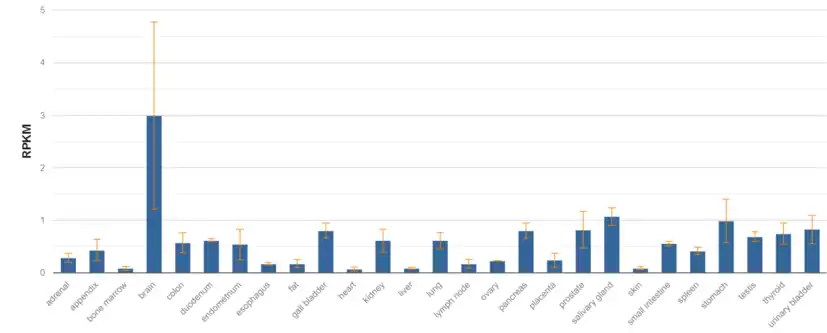 The protein is mostly found to be expressed in tissues of the brain and adrenal glands.[16][11]