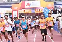 The race, which is certified by AIMS-certified,[2] begins and ends at the Sree Kanteerava Stadium, after looping through the roads of Bangalore. The different race categories at the event are – World 10K (participation restricted to International and National athletes), Open 10K (participation open to amateur runners), Majja Run (a 5.7 km run meant for fun runners), Senior Citizens’ Run (a 4.2 km run for Senior Citizens), and the Champions with Disability event (a 4.2 km event for persons with disability). In addition to this there also is a 10 km Corporate Champions category in which companies can field a team of 3 members and compete to achieve the best aggregate time.