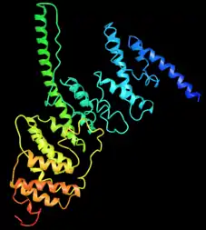 The gene has 10 exons.[15] The gene has 13 alternatively spliced transcripts, with 6 coding for a protein, 1 undergoing nonsense-mediated decay, and 6 being retained introns.[16]