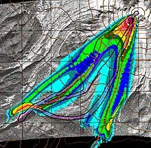 TITAN2D is a free software application developed by the Geophysical Mass Flow Group at the State University of New York (SUNY) at Buffalo. TITAN2D was developed for the purpose of simulating granular flows (primarily geological mass flows such as debris avalanches and landslides) over digital elevation models (DEM)s of natural terrain. The code is designed to help scientists and civil protection authorities assess the risk of, and mitigate, hazards due to dry debris flows and avalanches. TITAN2D combines numerical simulations of a flow with digital elevation data of natural terrain supported through a Geographical Information System (GIS) interface such as GRASS.