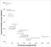 No fungi orthologs were found in the search for similar sequences, so it could be assumed that the gene may have arisen in Opisthokonts and proliferated down the animal tree. This would mean the protein diverged too late to evolve through the fungi tree. This would explain why there are no found plant orthologs as the gene would have arisen after animals and plants diverged evolutionarily.