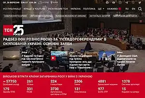 On March 23, 2022 at 2:00 p.m. on the main page of TCH.ua in connection with the Russian invasion of Ukraine, a link to the news section about the war from the editors of TSN in English, which is located on tsn.ua/en and is updated to this day, appeared.[7]