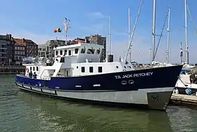 The TS Jack Petchey, is a British-flagged training ship, named after Jack Petchey OBE. The Jack Petchey is part of the Offshore Fleet of the Sea Cadet Corps, and is used to take 12 Sea Cadets to sea, although she comes alongside most nights she does have the capability to carry out extended passages. Whilst at sea the Sea Cadets aboard the Jack Petchey are able to put into practical use their seamanship and navigational training, as well as earning RYA (Royal Yachting Association) qualifications up to Watch leader. It is also an excellent opportunity for adventure. The Jack Petchy visits a number of ports across Britain and the Continent throughout the year.