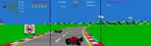 Gameplay is similar to Pole Position, in that the player, piloting a Formula One racecar, needs to reach a check point in a certain period of time in order to continue playing. While negotiating the course, the driver needs to exercise caution in the turns, as excessive speed will cause the car to skid; additionally, the driver needs to pass slower cars carefully to avoid a fiery crash.