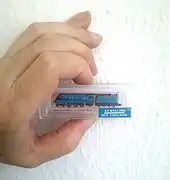 T gauge (1:450 or 1:480) is a model railway scale with a track gauge of 3 mm (0.118 in), referred from "Three-millimeter gauge" or "Third of N scale". It was introduced at the Tokyo Toy Show in 2006 by KK Eishindo of Japan, and went on sale in 2007. It is the smallest commercial model train scale in the world (with ZZ scale being second smallest). Since mid-2009, Railway Shop (Hong Kong) is the exclusive licensed manufacturer.