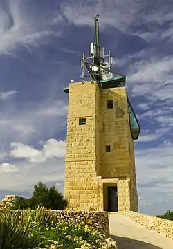 In 2005, the Nadur Local Council with the help of Maltacom (now GO) sponsored restoration works of the tower. A beacon to warn ships of their proximity to land, as well as a number of communication antennas were installed on the roof.[2] The modern additions are mounted on the surface of the tower, and care was taken to preserve the historic fabric of the original structure.[3]