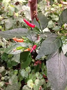 The tabasco pepper is a variety of the chili pepper species Capsicum frutescens originating in Mexico. It is best known through its use in Tabasco sauce, followed by peppered vinegar.[1]