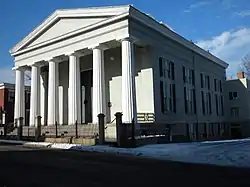 Tabb Street Presbyterian Church is a historic Presbyterian church located at Petersburg, Virginia. It was designed by architect Thomas Ustick Walter and built in 1843, in the Greek Revival style. It has stucco covered brick walls and features a massive Greek Doric order pedimented peristyle portico consisting of six fluted columns and full entablature. It has two full stories and a gallery. A three-story rear brick wing was added in 1944.[3]