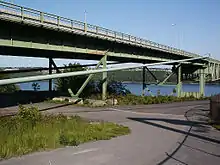 ![]() The 1950 Tacoma Narrows Bridge in 1988 | |