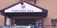 Taffs Well Rugby Football Club are a rugby union club based in Taff's Well in south Wales. Taffs Well RFC were founded in 1887 and applied for and were successful in gaining membership to the Welsh Rugby Union in 1900. The club is a feeder club for the Cardiff Blues.[2]