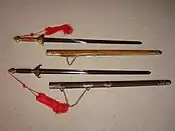 • the jian, a straight double-edged sword, practiced as taijijian;