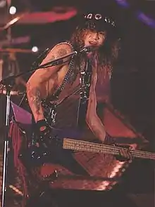 In April 1992, he was invited to join Japanese metal band Loudness.[4] He left them in November 1993, after recording only one studio album and one live album. In July 1994, he formed his own band and named it D.T.R, which stood for "Dirty Trashroad" and featured Mitsuo Takeuchi (ex:Joe-Erk) on vocals, Taiji Fujimoto (ex:The Dead Pop Stars, ex:Judy and Mary) on guitar and Toshihiko Okabe on drums.[5]