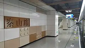 Taishan Road (Chinese: 泰山路) is a station on Line 2 and Line 4 of the Qingdao Metro. It opened on 16 December 2019.[1][2]