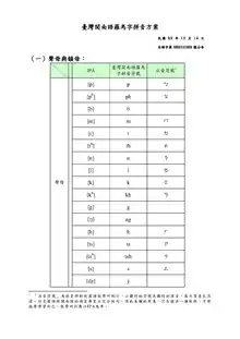 - Mandarin Pinyin: Táiwān Mǐnnányǔ Luómǎzì Pīnyīn Fāng'àn