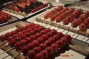 | Takoyaki | 章魚燒 | Japanese | A ball-shaped snack that is filled with diced octopus and fried in a flour-based batter, and it can be eaten with condiments such as wasabi. They are commonly found at night markets.[39] | |||