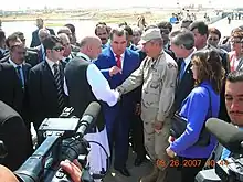 Tajik President Emomali Rahmon, Afghan President Hamid Karzai, and U.S. Secretary of Commerce Carlos Gutierrez at the 2007 dedication ceremony of the bridge.