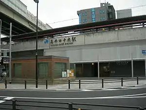 Takaida-Chūō Station (高井田中央駅, Takaida-Chūō-eki, station number:JR-F09) is a passenger railway station located in the city of Higashiōsaka, Osaka Prefecture, Japan, operated by the West Japan Railway Company (JR West). It is directly above but not connected with the Osaka Metro Takaida Station. There are no direct transfers between the two stations. Passengers transferring between the two stations must transfer at street level.