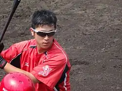 ![]() Uemoto with the Hiroshima Toyo Carp | |