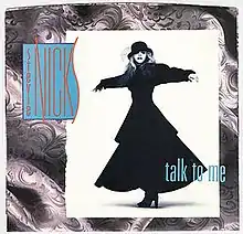 "Talk to Me" is a song recorded by the American singer and songwriter Stevie Nicks for her third solo studio album Rock a Little (1985). Written by Chas Sandford, the song was released as the lead single from Rock a Little in October 1985, through Modern Records. The single became a big hit for Nicks, peaking at number four on the Billboard Hot 100 chart for two weeks and peaking at number one on the Billboard Top Mainstream Rock Songs chart for two weeks in 1985.[1]
