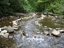 The upper Tallulah River Basin drains to the portion of the Tallulah River that is upstream from Lake Burton. This includes northwestern Rabun County, northeastern Towns County and part of Clay County, North Carolina. The United States Geological Survey collects data for the upper Tallulah River Basin from its gauging station at the point where the river crosses Plum Orchard Road.[4] The upper Tallulah River Basin includes a section of the river that is about 14.3 miles (23 km) long, draining a 56.5 square mile (146 km²) area.[2][5] Annually, the area receives at least 72 inches of rainfall and is entirely within the boundaries of the Chattahoochee National Forest. About one-third of the land falls within the Southern Nantahala Wilderness and about one-fifth is privately owned.[2] The primary tributaries of the Tallulah River in Rabun County are Coleman River and Persimmon Creek.