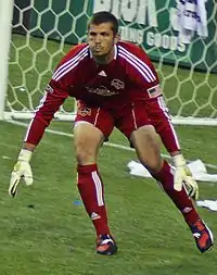 Hall signed with Major League Soccer club Houston Dynamo on January 23, 2009.[9] During his first season in Houston, Hall served as the backup to Pat Onstad and did not make a league appearance, although he did feature in cup competitions. He made his Dynamo debut on July 1, 2009, getting 3 saves in a 2–0 win over the Austin Aztex in the U.S. Open Cup third round. Hall kept another shutout in his next appearances, Houston's 4–0 win over the Charleston Battery in the Open Cup quarterfinals. In the semifinals, the Dynamo traveled to Hall's home state of Washington to face the Seattle Sounders. Hall made 10 saves in the game, but the Dynamo lost 2–1. He made his continental debut on August 26, helping Houston to a 1–1 draw with Árabe Unido in the 2009–10 CONCACAF Champions League group stage.[10] On October 21, Hall became the first and only goalkeeper to score in Dynamo history. During a Champions League match, he kicked it long into the Isidro Metapán box and the ball bounced in after Dynamo striker Brian Ching collided with Isidro Metapán goalkeeper Jose Luis Gonzalez. The referee ruled it wasn't a foul and the goal stood.[11] Despite Hall contributing to the scoring, the Dynamo still lost the game 3–2.[12] Houston finished 3rd in the group and was eliminated, with Hall playing in 4 of the 6 group stage games.[10]