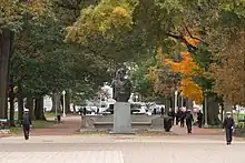 The USS Delaware was burned in 1861 at the Gosport Navy Yard to prevent Confederate capture at the start of the Civil War.[3] In 1866, the salvaged figurehead was transferred to the United States Naval Academy and placed on a pedestal facing Bancroft Hall, the Naval Academy's dormitory that is said to be the largest dormitory in the United States,[4] and is flanked by Stribling Walk on both sides.