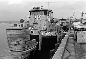 ![]() Tamaqua (YTB-797) moored at Naval Station Subic Bay, Philippines, 26 October 1983. | |