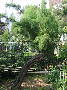 Tamarix chinensis is a species of tamarisk known by the common names five-stamen tamarisk[1] and Chinese tamarisk[2] or saltcedar. It is native to China and Korea, and it is known in many other parts of the world as an introduced species and sometimes an invasive noxious weed. It easily inhabits moist habitat with saline soils. It may grow as a tree with a single trunk or as a shrub with several spreading erect branches reaching 6 metres or more in maximum height. It has been known to reach 12 metres.[3] It has reddish, brown, or black bark. The small, multibranched twigs are covered in small lance-shaped, scale-like leaves which are no more than about 3 mm long. The inflorescence is a dense raceme of flowers a few cm long. Each fragrant flower has five petals which are usually pink but range from white to red.